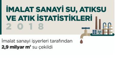 TÜİK, “2018, İmalat Sanayi Su, Atıksu ve Atık İstatistikleri”ni açıkladı. Buna göre, çekilen suyun %71,2’si denizden, %15,5’i kaynak ve kuyudan,…