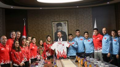 Bakanlık merkez binada gerçekleşen kabulde, sporcular Habibe Afyonlu, Hanife Özcan, Musa Şimşek, Hilal Öztürk, Özlem Yıldız, Ayten Mediha Yeksan, Müberra…
