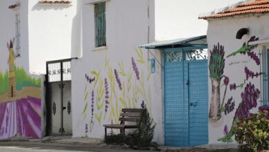 Muğla’nın Menteşe ilçesi Yerkesik Yeniköy Mahallesinde Muğla Büyükşehir Belediyesi’nin oluşturduğu lavanta bahçesinin ardından mahallede ev ve sokak duvarları lavanta figürleri…